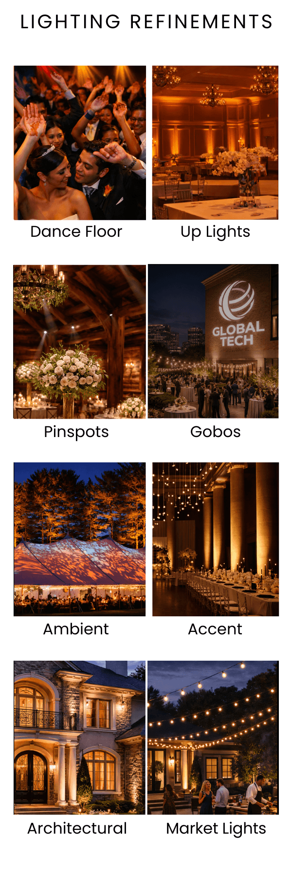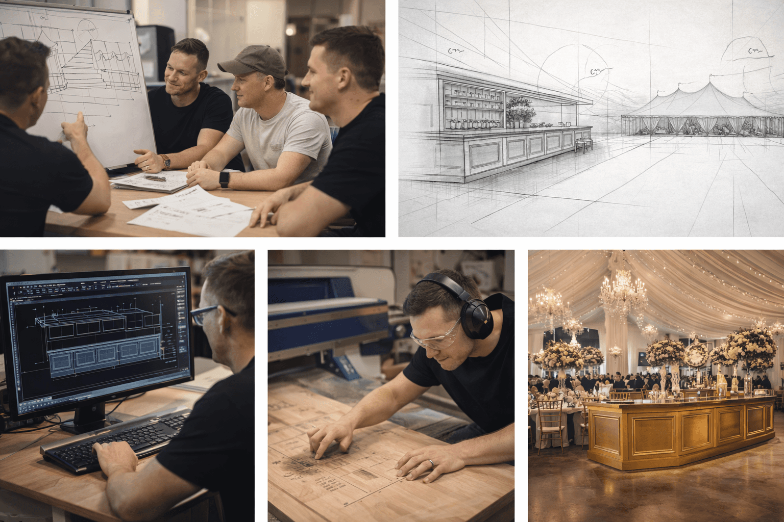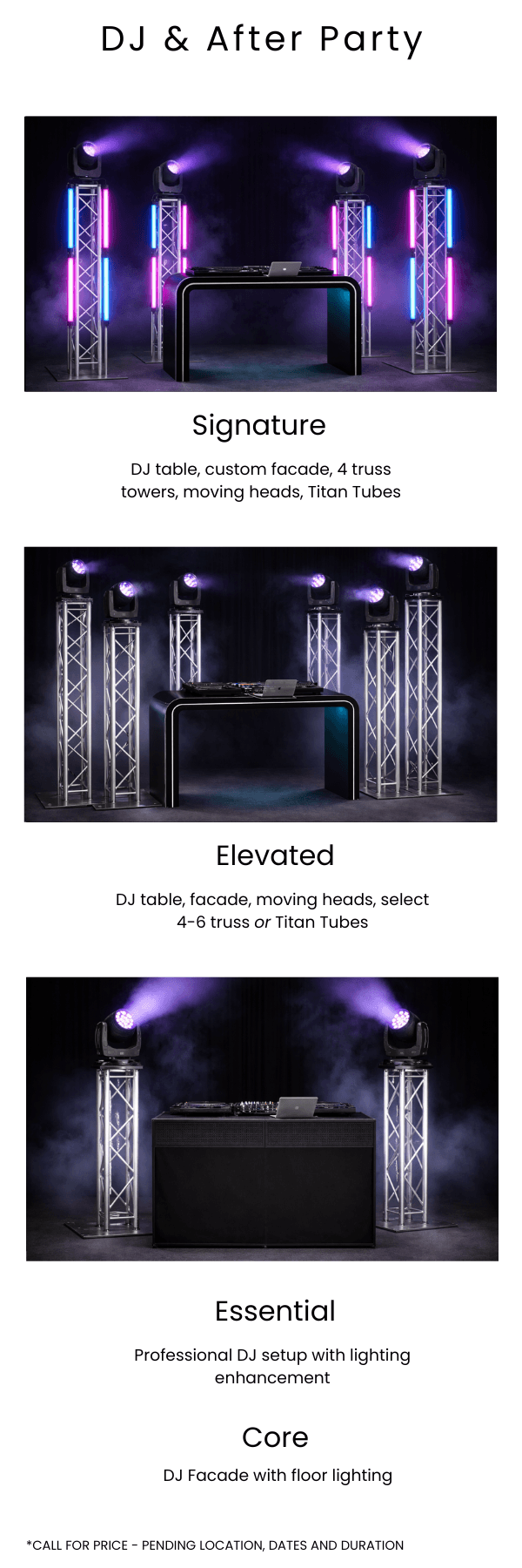 Environmental elevations are elements that refine a space. Facades, custom builds, scenic pieces, bars, custom altars & aisles, DJ gear and more… are integrated to enhance function, focus, and overall presence.